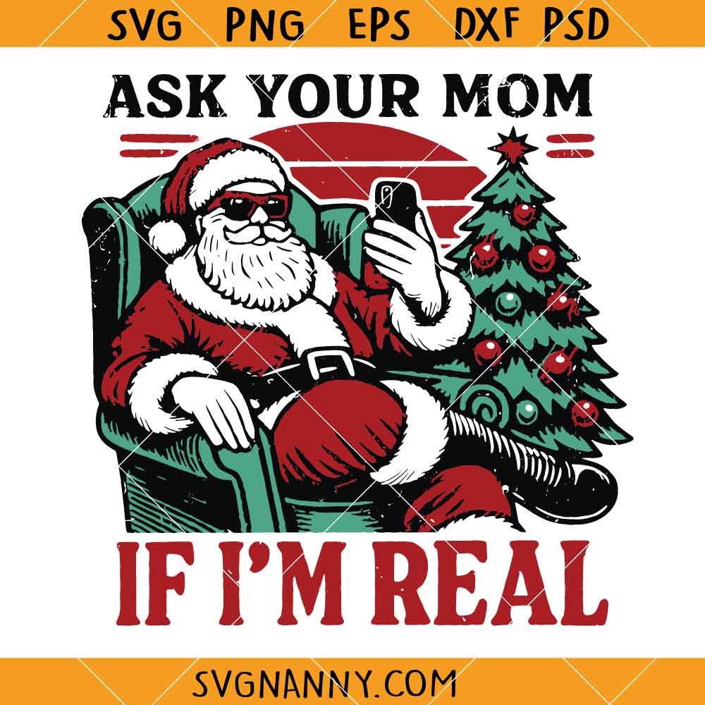 Product Tags# Ask Your Mom if I’m real retro Santa SVG, Retro christmas humor SVG, Funny christmas svg