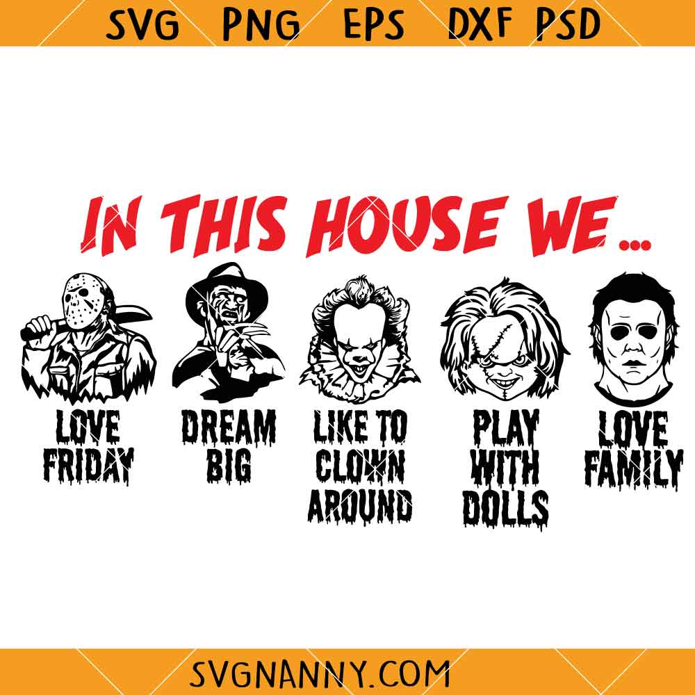 Product Tags# In this house we Halloween SVG, Horror Character svg, Horror Haloween svg, Horror friends svg, Halloween svg