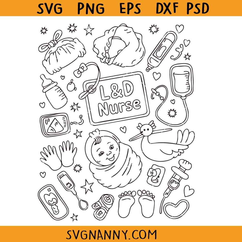 Product Tags# Labor and Delivery Nurse Doodles SVG, Labor & Delivery Nurse svg, nursing svg, registered nurse svg
