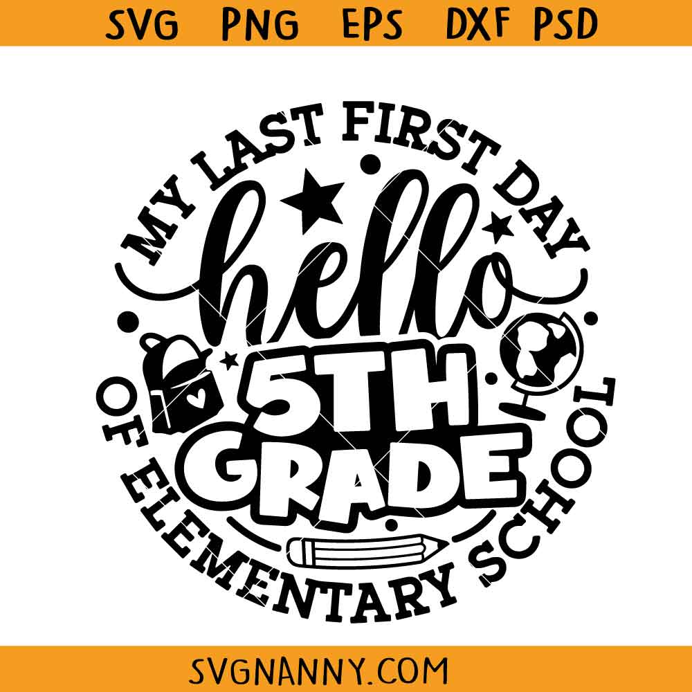 Product Tags# Last First Day of Elementary School svg, Back to School SVG png, First Day of School SVG, 5th Grade Vibes Svg, First Day of 5th Grade svg