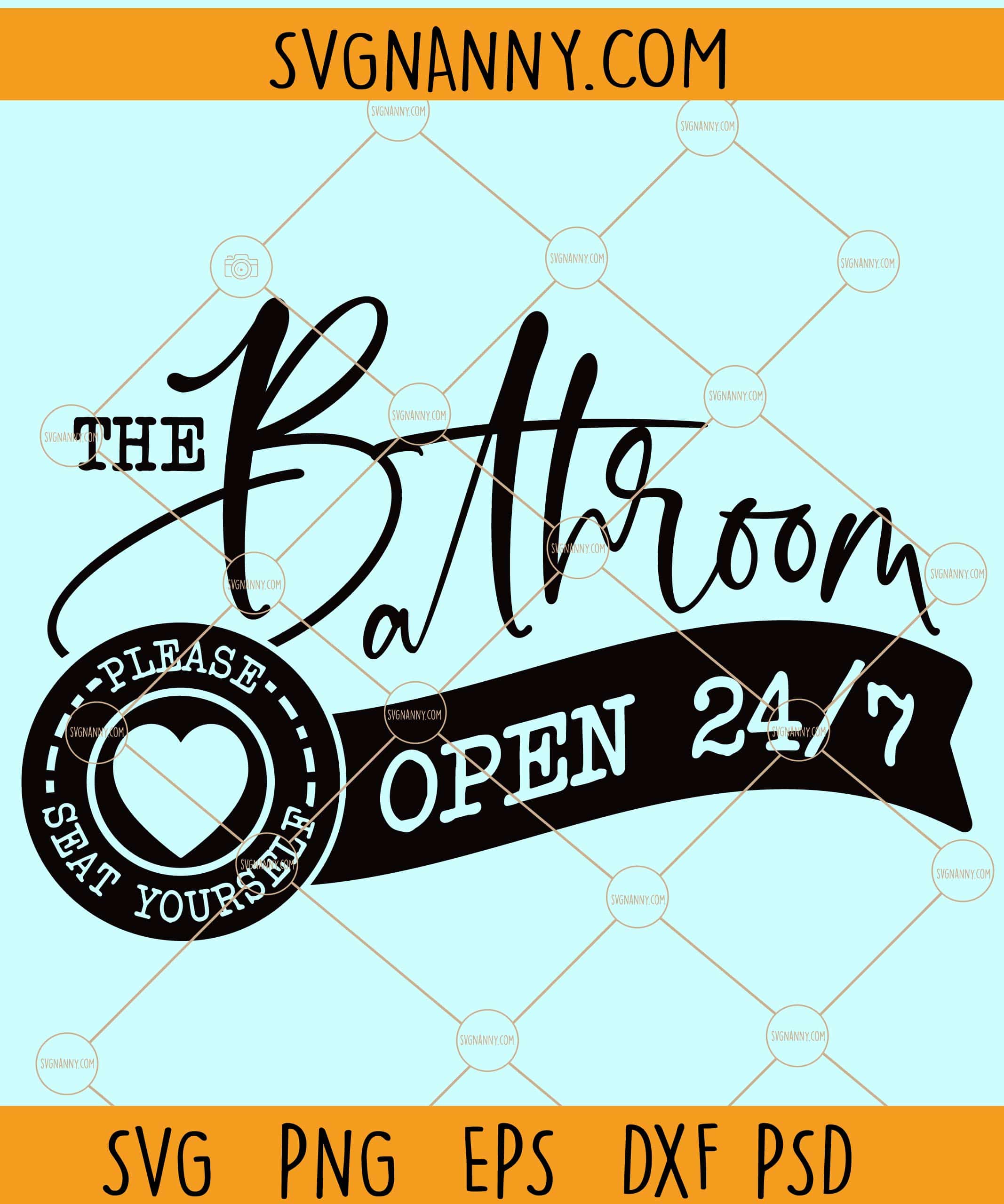Product Tags# The bathroom open 24-7 svg, Bathroom svg, Humorous quote svg, Funny Bathroom Sign svg, Bathroom quote svg, Funny Bathroom saying svg, Funny Bathroom svg